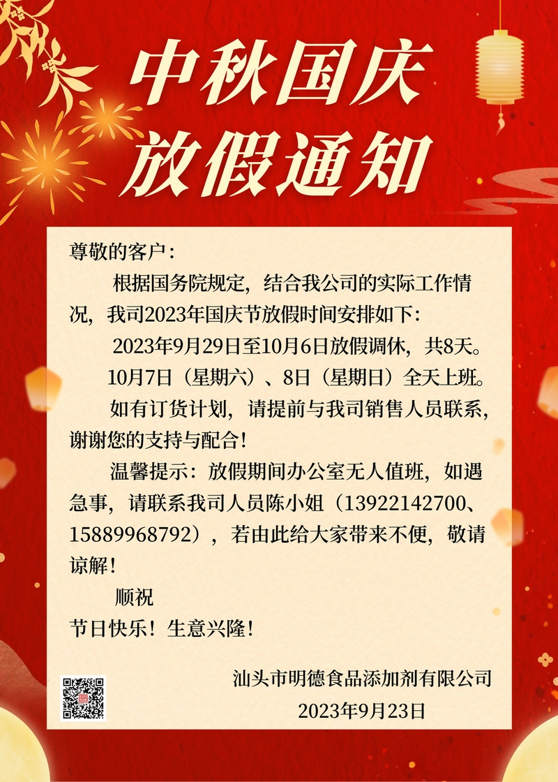 2023年中秋節、國慶節放假通知